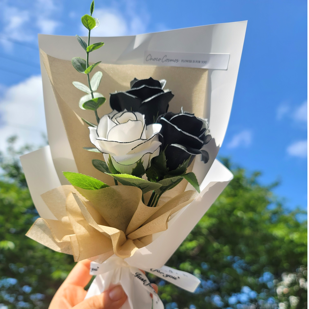 꽃다발의 디자인 또한 정말 훌륭했어요. 샤넬을 연상시키는 고급스러운 디자인에, 블랙과 화이트 장미의 조화가 세련된 느낌을 더했죠. 그냥 두기만 해도 인테리어 소품으로 손색없을 정도로 예뻤어요. 특히, 비누 꽃이라서 오랫동안 시들지 않고 아름다움을 간직할 수 있다는 점이 정말 마음에 들었어요.